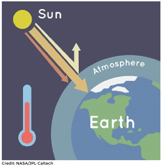 atmosphere. That’s what keeps our Earth warm and cosy 14 degrees Celsius, on average. However, human activity is causing a lot more greenhouse gases to be released into the atmosphere and as a result, more heat is trapped. Consequently, the